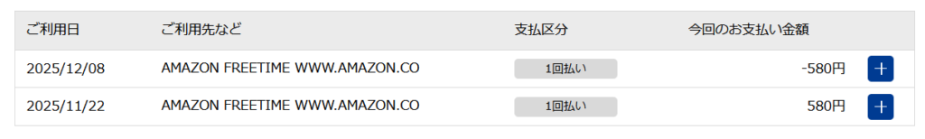 2025/11/22 AMAZON FREETIME WWW.AMAZON.CO 1回払い 580円
