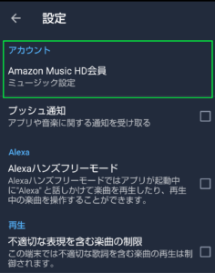 画面右上アカウントマーク横の3点マーク→ 【設定】→アカウント【Amazon Music Unlimited会員から手続きします。